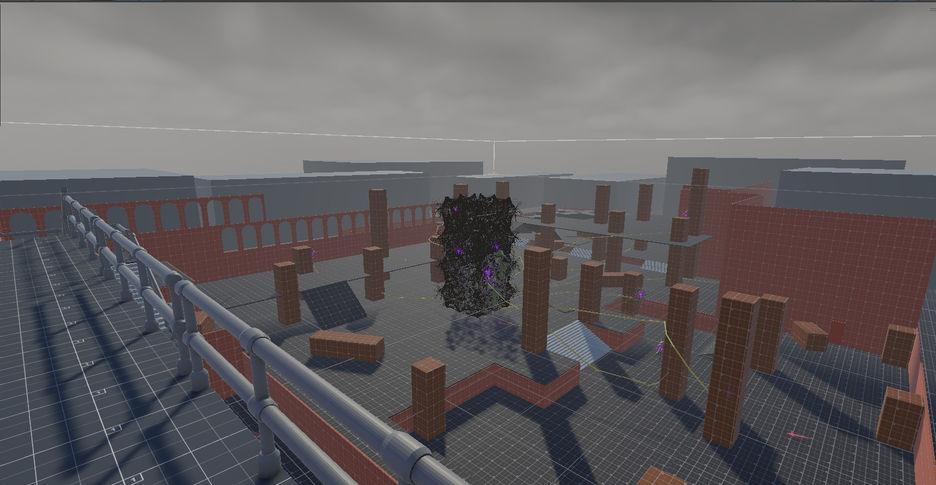The level is designed for 2–4 player co-op, which meant ensuring enough room, traversal options, and engagement opportunities for multiple players simultaneously. As player movement evolved — especially with dodge mechanics and sprint slides — the initial layouts proved too cramped. Adding enemies and dynamic combat further highlighted the need for larger encounter spaces.