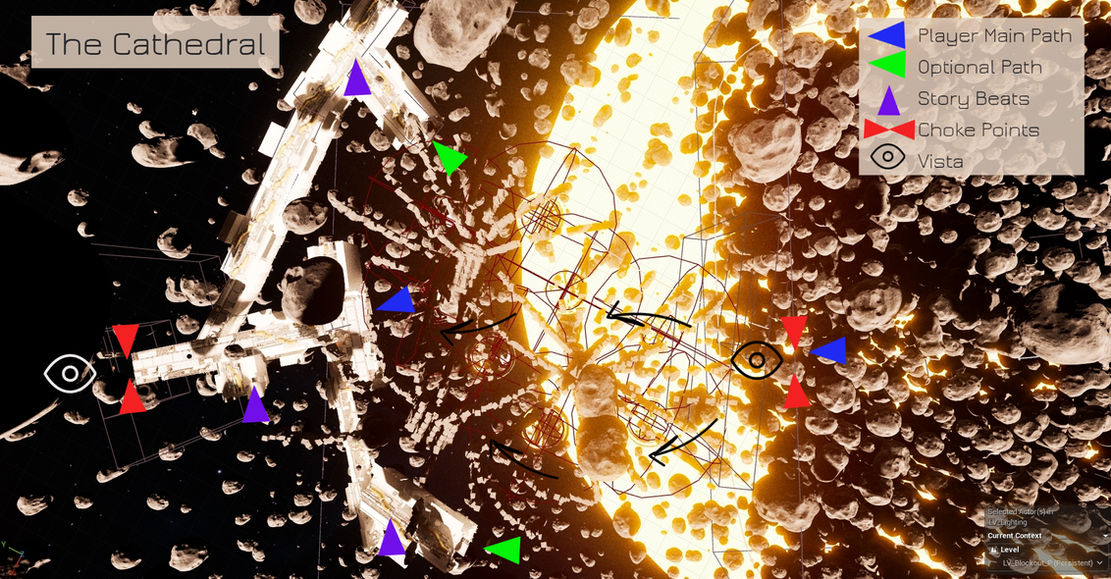 Procedural Content Generation (PCG): Implemented PCG volumes and spline systems to generate asteroid fields and carve traversal paths.