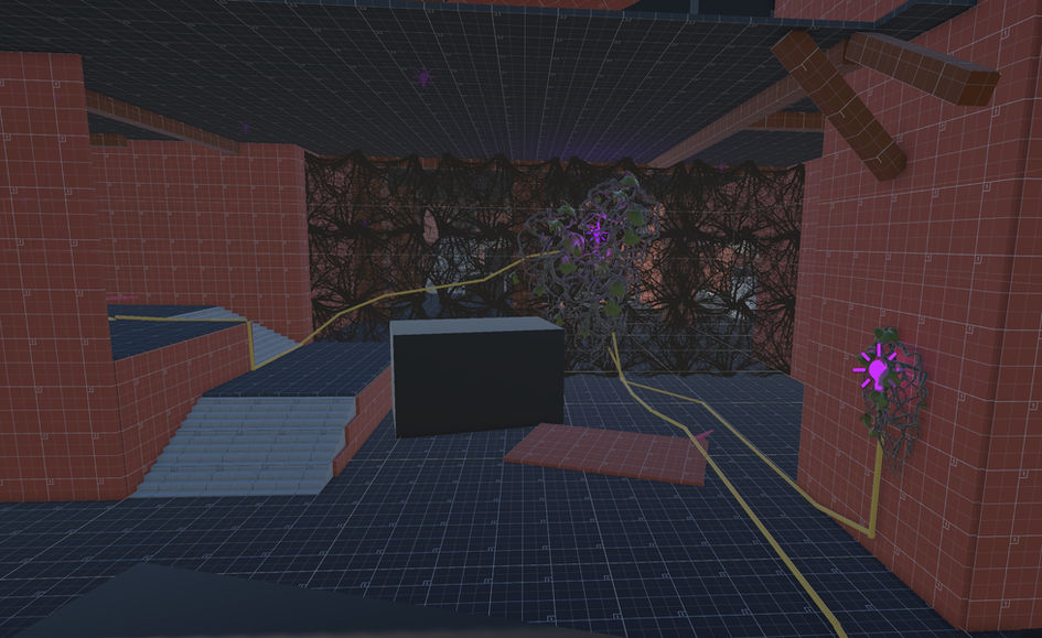 The level is designed for 2–4 player co-op, which meant ensuring enough room, traversal options, and engagement opportunities for multiple players simultaneously. I tackled this by focusing on movement: crafting spaces that open up and close in, shift in height and direction, and include simple puzzles to keep players active.